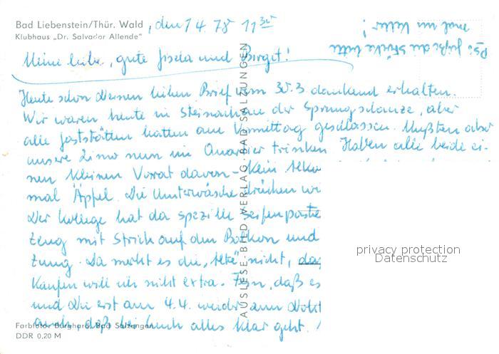 73147585 Bad Liebenstein Klubhaus Dr Salvador Allende postalisch nicht gelaufen Erhaltung siehe scans [FriedD77] KatCode: 11110016063002