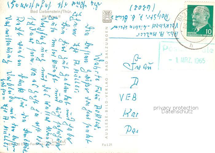 73041652 alte Postkarte Bad Liebenstein Klubhaus II postalisch gelaufen Erhaltung siehe scans [WerneD78] KatCode: 11110016063002