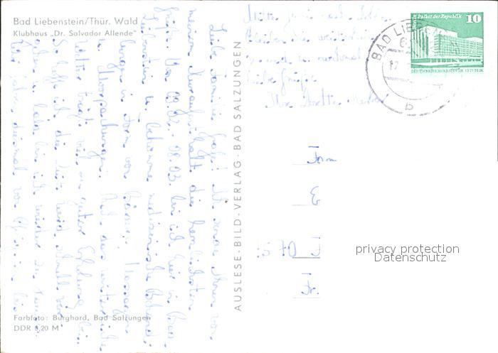72309034 alte Postkarte Bad Liebenstein Klubhaus Salvador Allende postalisch gelaufen Erhaltung siehe scans KatCode: 11110016063002