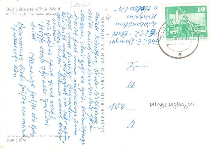 73124274 alte Postkarte Bad Liebenstein Klubhaus Salvador Allende postalisch gelaufen Erhaltung siehe scans [KathaD81] KatCode: 11110016063002