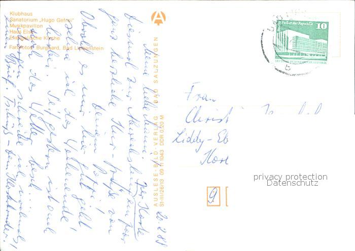 72418306 alte Postkarte Bad Liebenstein Klubhaus Sanatorium Hugo Gefroi Musikpavillon Haus Else Ev Kirche postalisch gelaufen Erhaltung siehe scans KatCode: 11110016063002