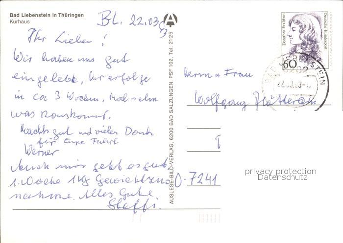 72406731 alte Postkarte Bad Liebenstein Kurhaus postalisch gelaufen Erhaltung siehe scans KatCode: 11110016063002