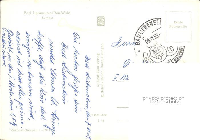 72336862 alte Postkarte Bad Liebenstein Kurhaus postalisch gelaufen Erhaltung siehe scans KatCode: 11110016063002