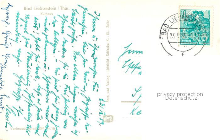 73750657 alte Postkarte Bad Liebenstein Kurhaus postalisch gelaufen Erhaltung siehe scans [WerneD78] KatCode: 11110016063002