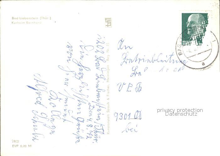 72395930 Bad Liebenstein Kurheim Bernhard postalisch nicht gelaufen Erhaltung siehe scans KatCode: 11110016063002