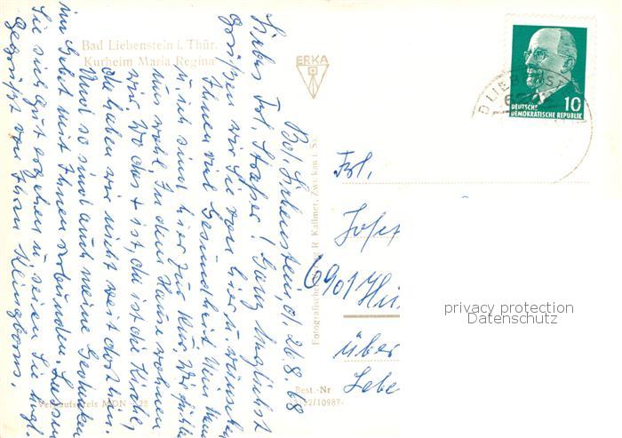 73842500 alte Postkarte Bad Liebenstein Kurheim Maria Regina postalisch gelaufen Erhaltung siehe scans [FriedD77] KatCode: 11110016063002