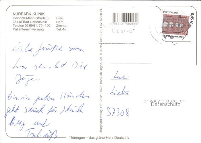 72515585 alte Postkarte Bad Liebenstein Kurpark Klinik Dr Lauterbach Halle Schwimmbad postalisch gelaufen Erhaltung siehe scans KatCode: 11110016063002