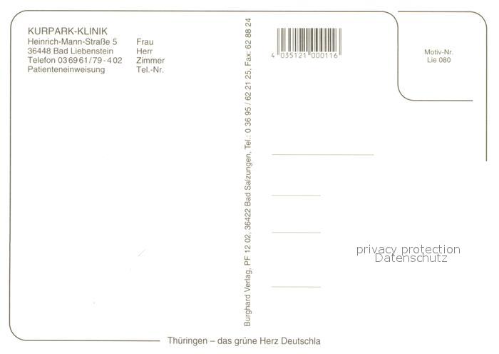 73734271 Bad Liebenstein Kurpark-Klinik Dr. Lauterbach postalisch nicht gelaufen Erhaltung siehe scans [LiesaD40] KatCode: 11110016063002