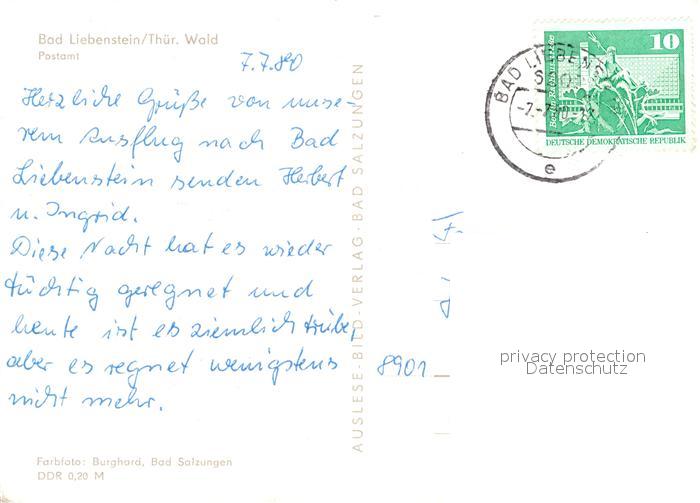 73016351 alte Postkarte Bad Liebenstein Postamt postalisch gelaufen Erhaltung siehe scans [NatalD47] KatCode: 11110016063002