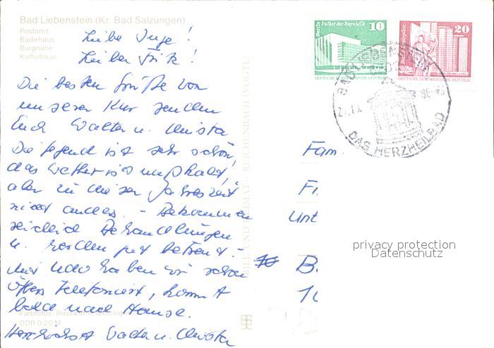 72061807 alte Postkarte Bad Liebenstein Postamt Badehaus Burgruine postalisch gelaufen Erhaltung siehe scans KatCode: 11110016063002