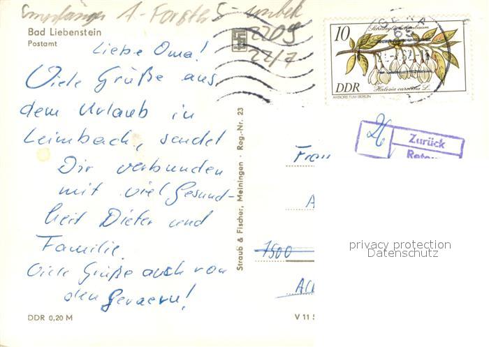 73686548 alte Postkarte Bad Liebenstein Postamt Fachwerkhaus postalisch gelaufen Erhaltung siehe scans [FriedD77] KatCode: 11110016063002