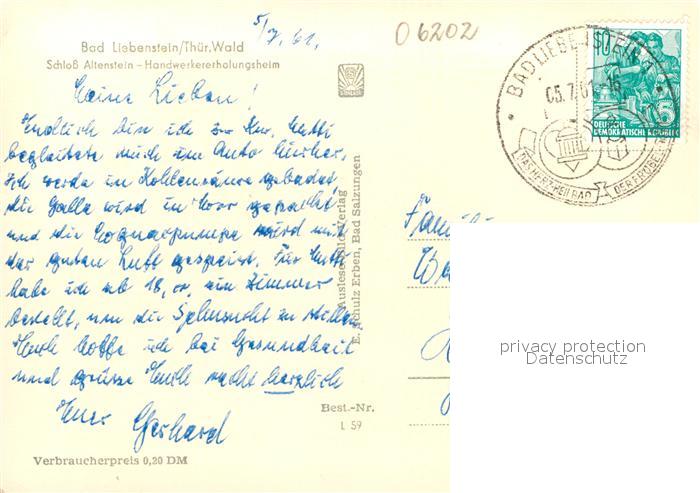 72941311 alte Postkarte Bad Liebenstein Schloss Altenstein postalisch gelaufen Erhaltung siehe scans [NatalD47] KatCode: 11110016063002