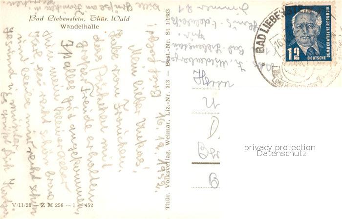 73315571 alte Postkarte Bad Liebenstein Wandelhalle postalisch gelaufen Erhaltung siehe scans [KathaD81] KatCode: 11110016063002