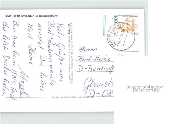 72391517 alte Postkarte Bad Liebenwerda Maasdorfer Teiche Zeischa Waldbad Rathaus Lubwartturm postalisch gelaufen Erhaltung siehe scans KatCode: 11110012062024