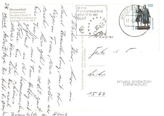 73751954 alte Postkarte Bad Liebenwerda Rheumaklinik Hallenbad Rezeption postalisch gelaufen Erhaltung siehe scans [WerneD78] KatCode: 11110012062024