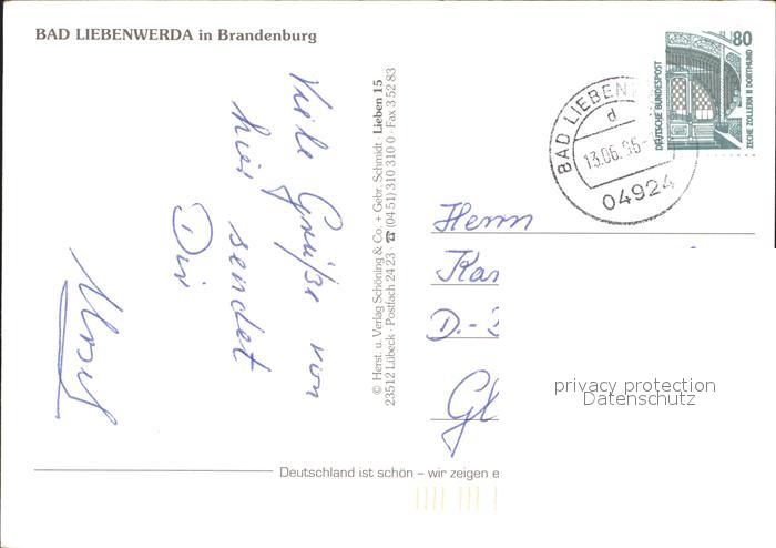 72337099 alte Postkarte Bad Liebenwerda Teilansichten Turm Rathaus Kirche Fachwerkhaus Wappen postalisch gelaufen Erhaltung siehe scans KatCode: 11110012062024