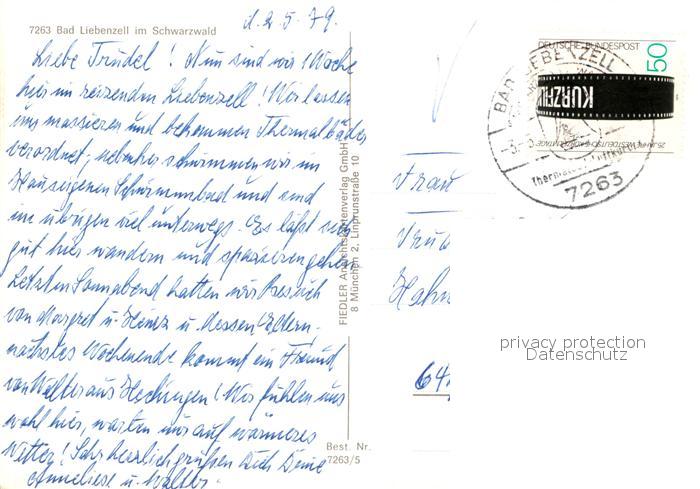73040706 alte Postkarte Bad Liebenzell postalisch gelaufen Erhaltung siehe scans [NatalD47] KatCode: 11110008235008