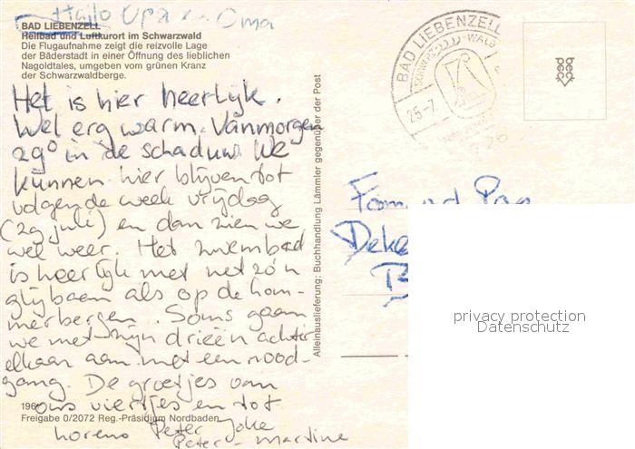 72845287 alte Postkarte Bad Liebenzell postalisch gelaufen Erhaltung siehe scans [NatalD47] KatCode: 11110008235008