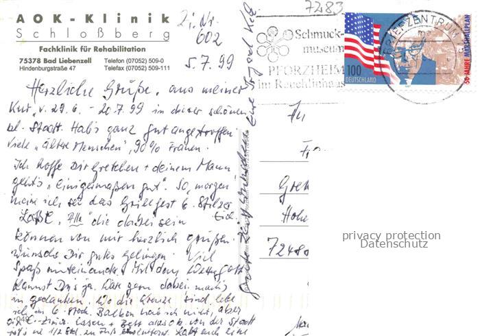 74038023 alte Postkarte BAD LIEBENZELL AOK Klinik Schlossberg postalisch gelaufen Erhaltung siehe scans [WerneD78] KatCode: 11110008235008