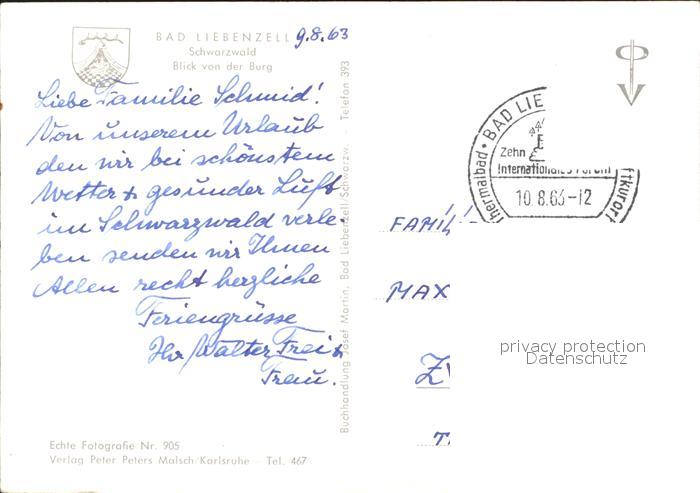 71936727 alte Postkarte Bad Liebenzell Blick von der Burg postalisch gelaufen KatCode: 11110008235008