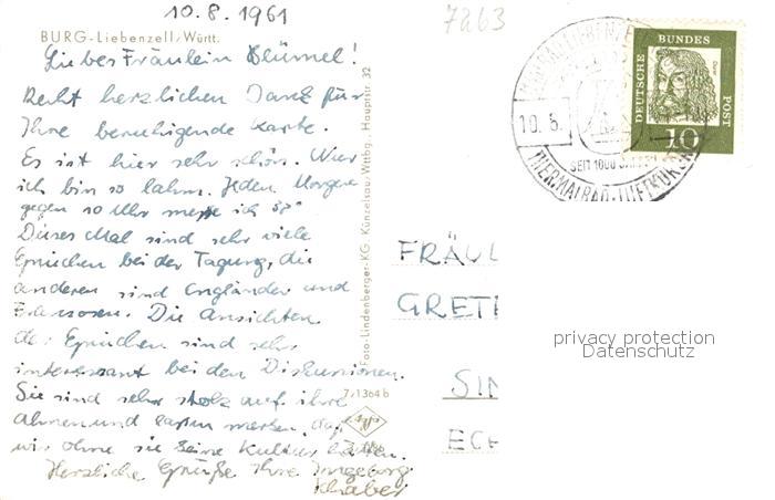 73202161 alte Postkarte Bad Liebenzell Burg postalisch gelaufen Erhaltung siehe scans [KathaD81] KatCode: 11110008235008