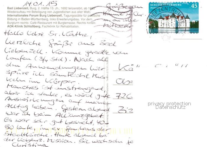 72971491 alte Postkarte Bad Liebenzell Burg Cafe Restaurant AOK Klinik Schlossberg Fliegeraufnahme postalisch gelaufen Erhaltung siehe scans [FriedD77] KatCode: 11110008235008
