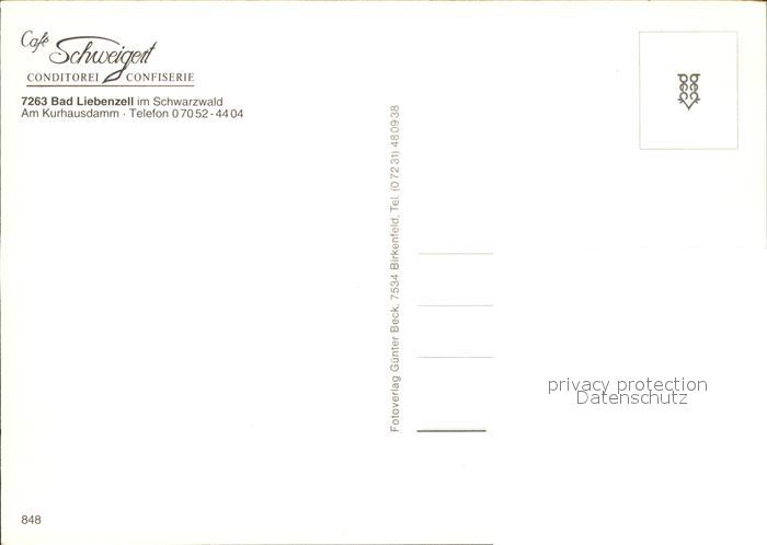 72586620 Bad Liebenzell Cafe Schweigert Conditorei Am Kurhausdamm postalisch nicht gelaufen Erhaltung siehe scans [AntonD74] KatCode: 11110008235008