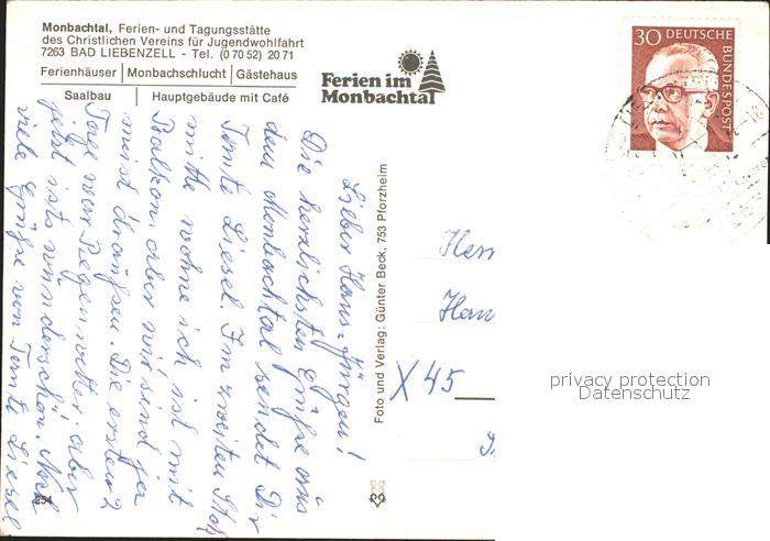 71935420 alte Postkarte Bad Liebenzell Ferienhaeuser Monbachschlucht Gaestehaus Saalbau Hauptgebaeude Cafe postalisch gelaufen Erhaltung siehe scans KatCode: 11110008235008