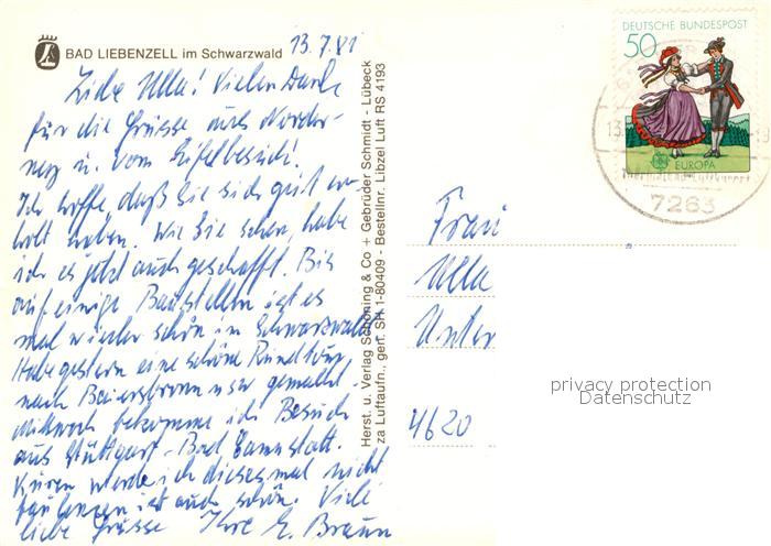 73321675 alte Postkarte Bad Liebenzell Fliegeraufnahme postalisch gelaufen Erhaltung siehe scans [WerneD78] KatCode: 11110008235008