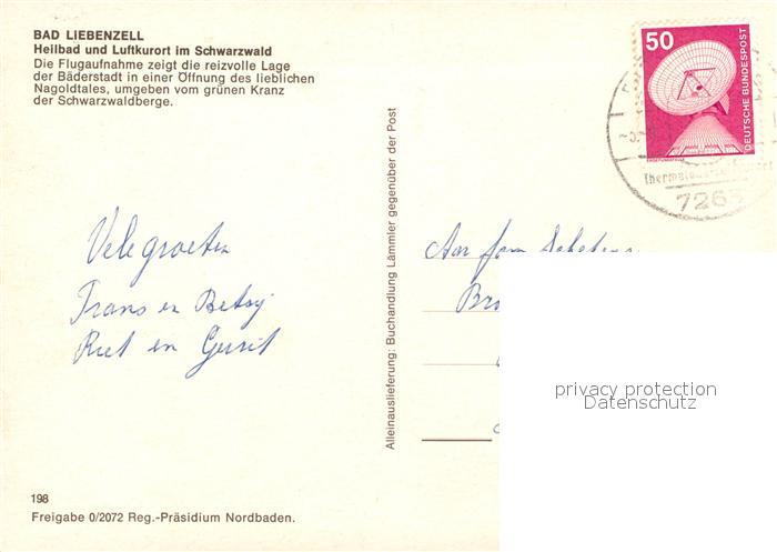 73124290 alte Postkarte Bad Liebenzell Fliegeraufnahme postalisch gelaufen Erhaltung siehe scans [KathaD81] KatCode: 11110008235008