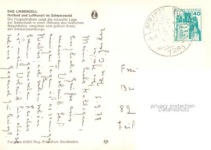 73087532 alte Postkarte Bad Liebenzell Fliegeraufnahme postalisch gelaufen Erhaltung siehe scans [NatalD47] KatCode: 11110008235008