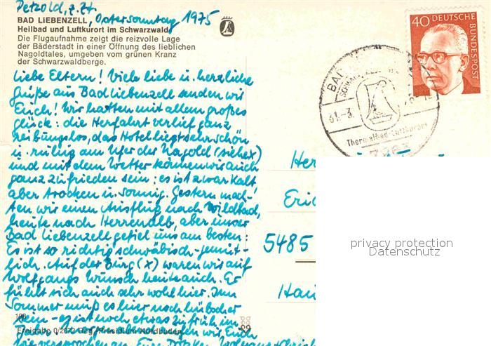 72726573 alte Postkarte Bad Liebenzell Fliegeraufnahme postalisch gelaufen Erhaltung siehe scans [WerneD78] KatCode: 11110008235008
