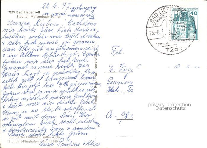 72612274 alte Postkarte Bad Liebenzell Fliegeraufnahme postalisch gelaufen Erhaltung siehe scans [AndreD76] KatCode: 11110008235008