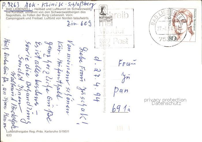 alte Postkarte Bad Liebenzell Fliegeraufnahme postalisch gelaufen Erhaltung siehe scans