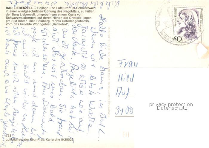 73744831 alte Postkarte Bad Liebenzell Fliegeraufnahme postalisch gelaufen Erhaltung siehe scans [FriedD77] KatCode: 11110008235008