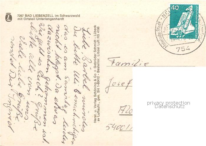 73841465 alte Postkarte Bad Liebenzell Fliegeraufnahme mit Ortsteil Unterlengenhardt postalisch gelaufen Erhaltung siehe scans [WerneD78] KatCode: 11110008235008