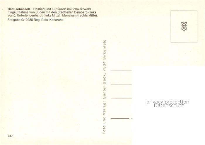 73677822 Bad Liebenzell Fliegeraufnahme mit Unterlengenhardt und Monakam postalisch nicht gelaufen Erhaltung siehe scans [WerneD78] KatCode: 11110008235008
