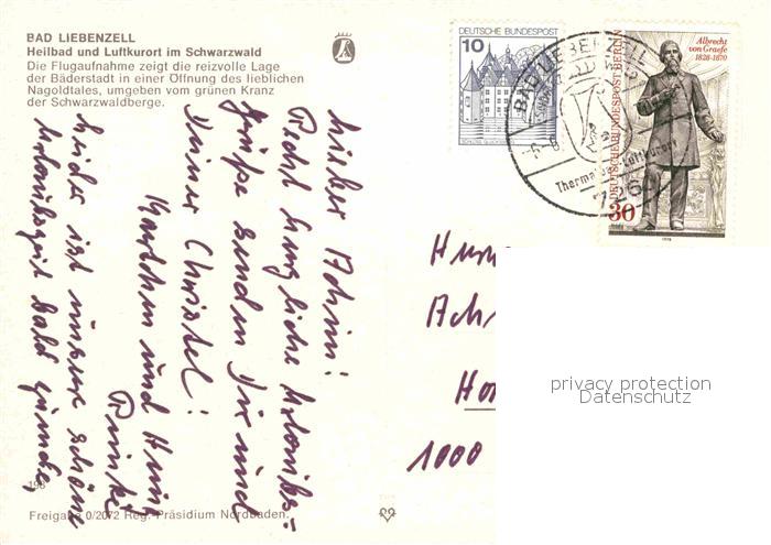 72792226 alte Postkarte Bad Liebenzell Fliegeraufnahme Nagoldtal postalisch gelaufen Erhaltung siehe scans [LiesaD40] KatCode: 11110008235008