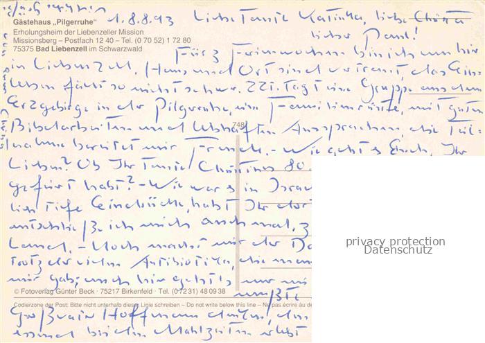 74040592 BAD LIEBENZELL Gaestehaus Pilgerruhe Erholungsheim der Liebenzeller Mission postalisch nicht gelaufen Erhaltung siehe scans [FriedD77] KatCode: 11110008235008
