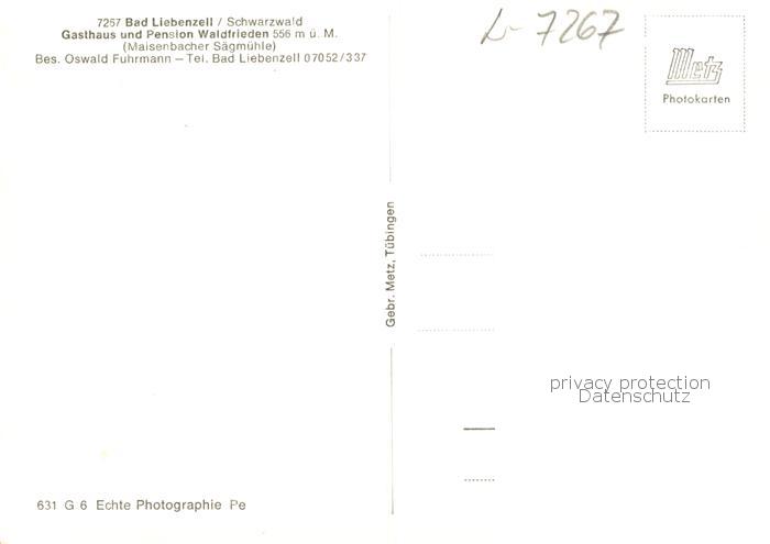 73858234 Bad Liebenzell Gasthaus Pension Waldfrieden Schwarzwald postalisch nicht gelaufen Erhaltung siehe scans [FriedD77] KatCode: 11110008235008