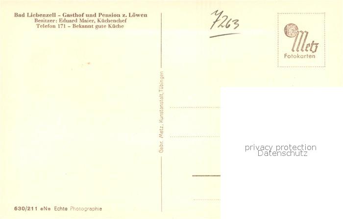 42969929 Bad Liebenzell Gasthof Pension zum Loewen postalisch nicht gelaufen Erhaltung siehe scans [AndreD76] KatCode: 11110008235008
