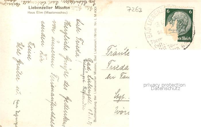 43189086 alte Postkarte Bad Liebenzell Haus Elim Missionsschau postalisch gelaufen Erhaltung siehe scans [FriedD77] KatCode: 11110008235008