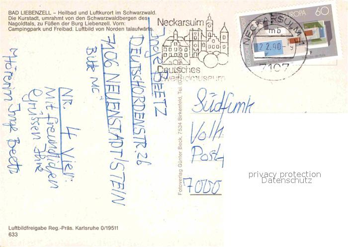 72751105 alte Postkarte Bad Liebenzell Heilbad Luftkurort Nagoldtal Schwarzwald Fliegeraufnahme postalisch gelaufen Erhaltung siehe scans [FriedD77] KatCode: 11110008235008
