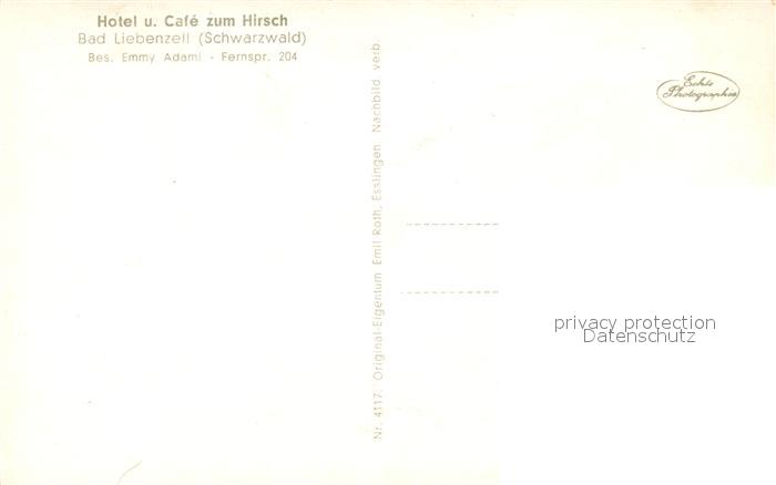 43190914 Bad Liebenzell Hotel Cafe zum Hirsch Kurort im Schwarzwald postalisch nicht gelaufen Erhaltung siehe scans [FriedD77] KatCode: 11110008235008
