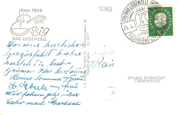 43189079 alte Postkarte Bad Liebenzell Konditorei Cafe Essig Kurort im Schwarzwald postalisch gelaufen Erhaltung siehe scans [FriedD77] KatCode: 11110008235008