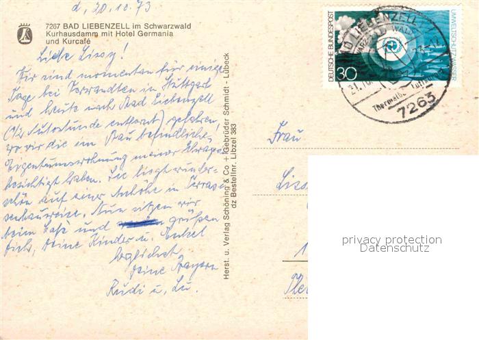 72717536 alte Postkarte Bad Liebenzell Kurhausdamm mit Hotel Germania und KurCafe postalisch gelaufen Erhaltung siehe scans [LiesaD40] KatCode: 11110008235008