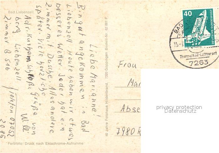 73306223 alte Postkarte Bad Liebenzell Kursanatorium postalisch gelaufen Erhaltung siehe scans [WerneD78] KatCode: 11110008235008