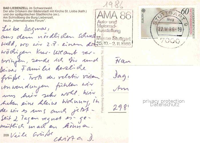 72887257 alte Postkarte Bad Liebenzell mit Burg Liebenzell postalisch gelaufen Erhaltung siehe scans [LiesaD40] KatCode: 11110008235008