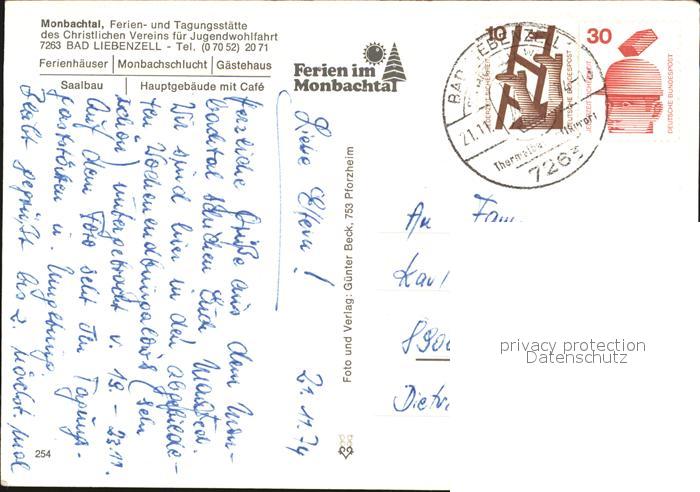 72598517 alte Postkarte Bad Liebenzell Mombachtal postalisch gelaufen Erhaltung siehe scans [LiesaD40] KatCode: 11110008235008
