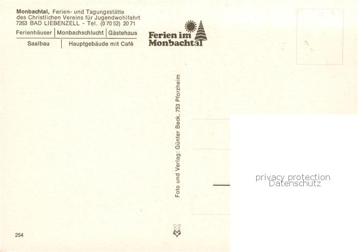 73804656 Bad Liebenzell Monbachtal Ferien und Tagungsstaette Details postalisch nicht gelaufen Erhaltung siehe scans [WerneD78] KatCode: 11110008235008